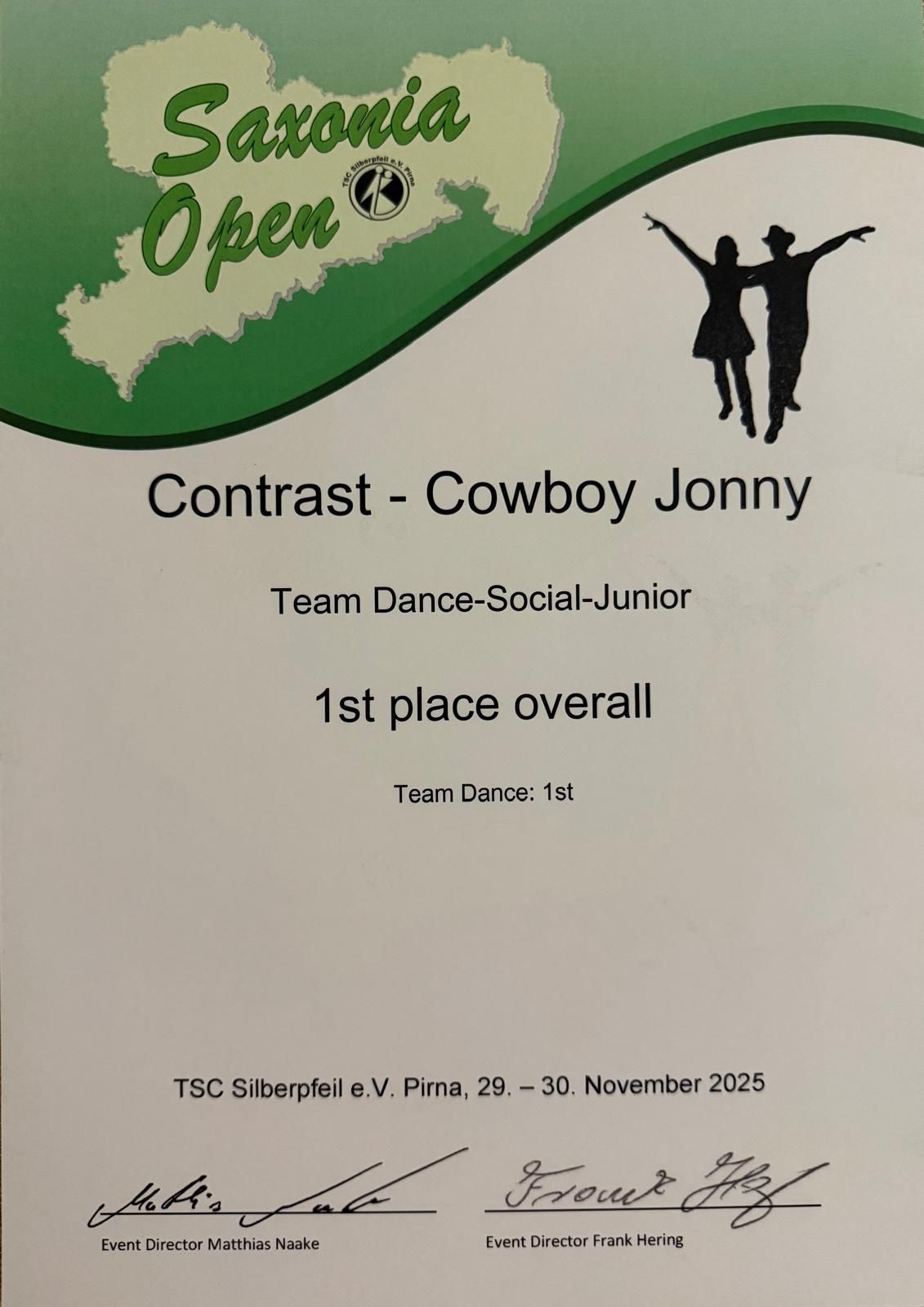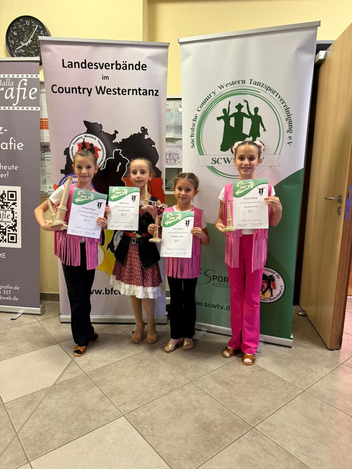 Die Deutsche Meisterschaft im Country Westerntanz wurde vom Bundesverband für Country Westerntanz Deutschland (BfCW) vom 26. bis 28. September 2025 in der Rheinhalle, Im Bruch 3, 68775 Ketsch ausgerichtet. Unsere Mitglieder, insbesondere die Kinder, zeigten hervorragende Ergebnisse. In der Division Breitensport, Fortgeschrittene Junioren erlangte Alwina Weiss den 1. Platz und damit den Titel Deutsche Meisterin.